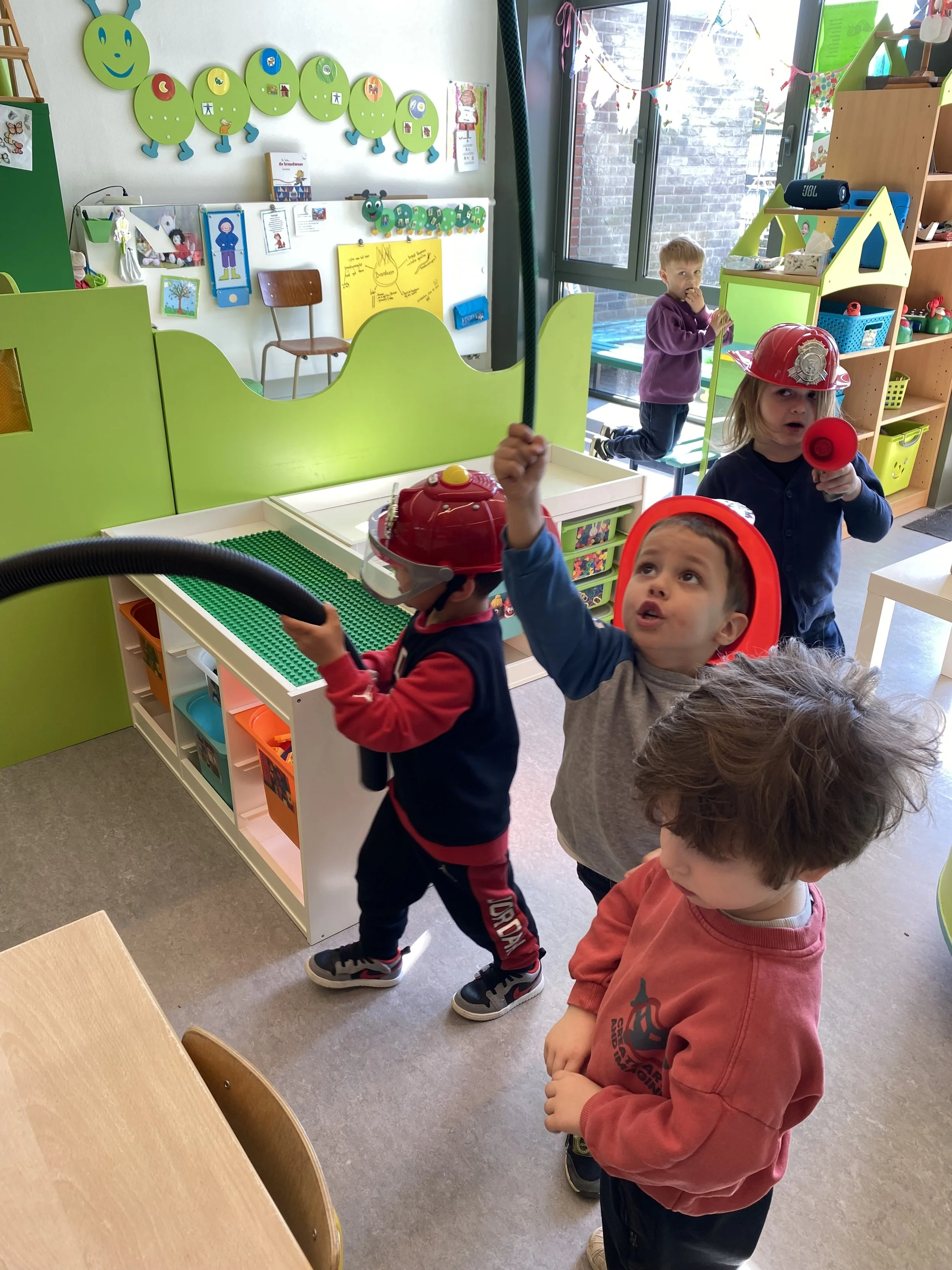 Onze kleuters zijn 2 weken helemaal ondergedompeld in de wereld van de brandweer. De toekomst is verzekerd ;-)